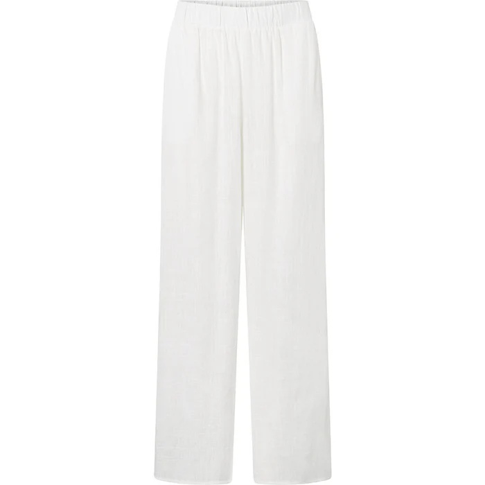Fremstillet i en lækker blanding af 70% viskose og 30% hør føles stoffet let og luftigt, hvilket gør bukserne perfekte til varmere dage eller afslappede lejligheder. De har en fuld længde og en regular waist pasform, der skaber et elegant og afslappet look
